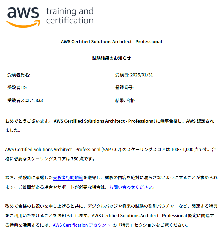 1月に AWS Certificated Solutions Architect – Professional (SAP-C02) に合格しました。